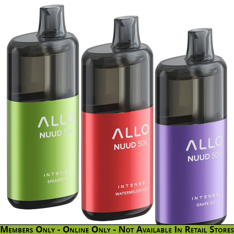 (Read more)Allo NUUD 50K disposable vapes deliver up to 50000 puffs of vapor using 20mL of e-liquid with 99% usage efficiency, an 850mAh rechargeable battery, adjustable airflow, and a clear tank to view the remaining e-liquid level.